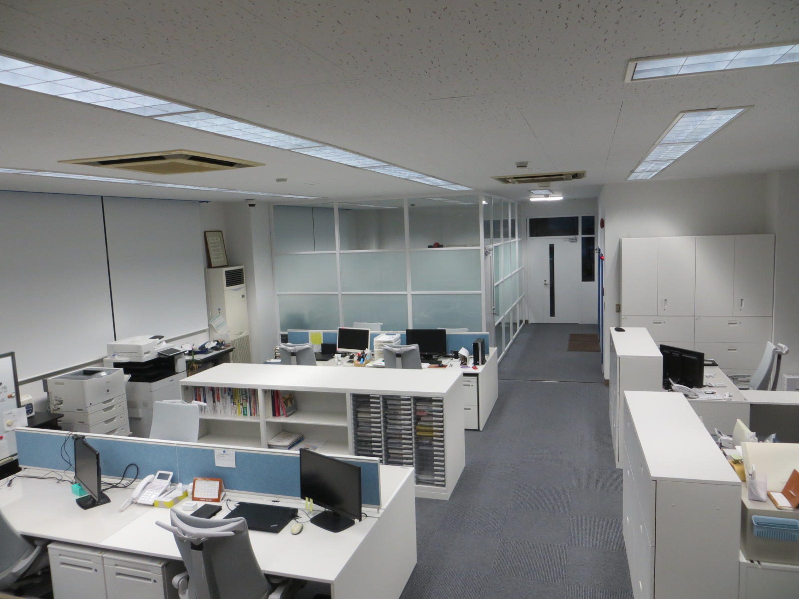 外観は白壁にコーポレートカラーの青がアクセントとなり、より当社らしさを印象付けるものになりました。