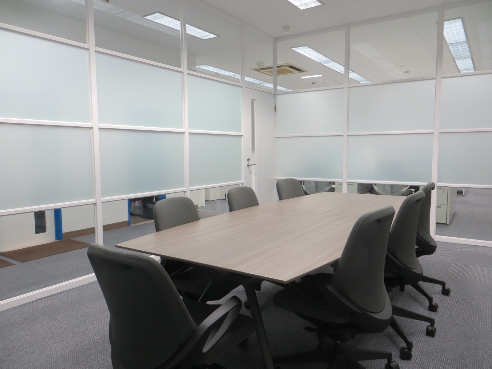 また、玄関の自動ドアにカットフィルムで社名を表示しております。