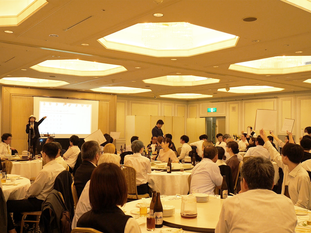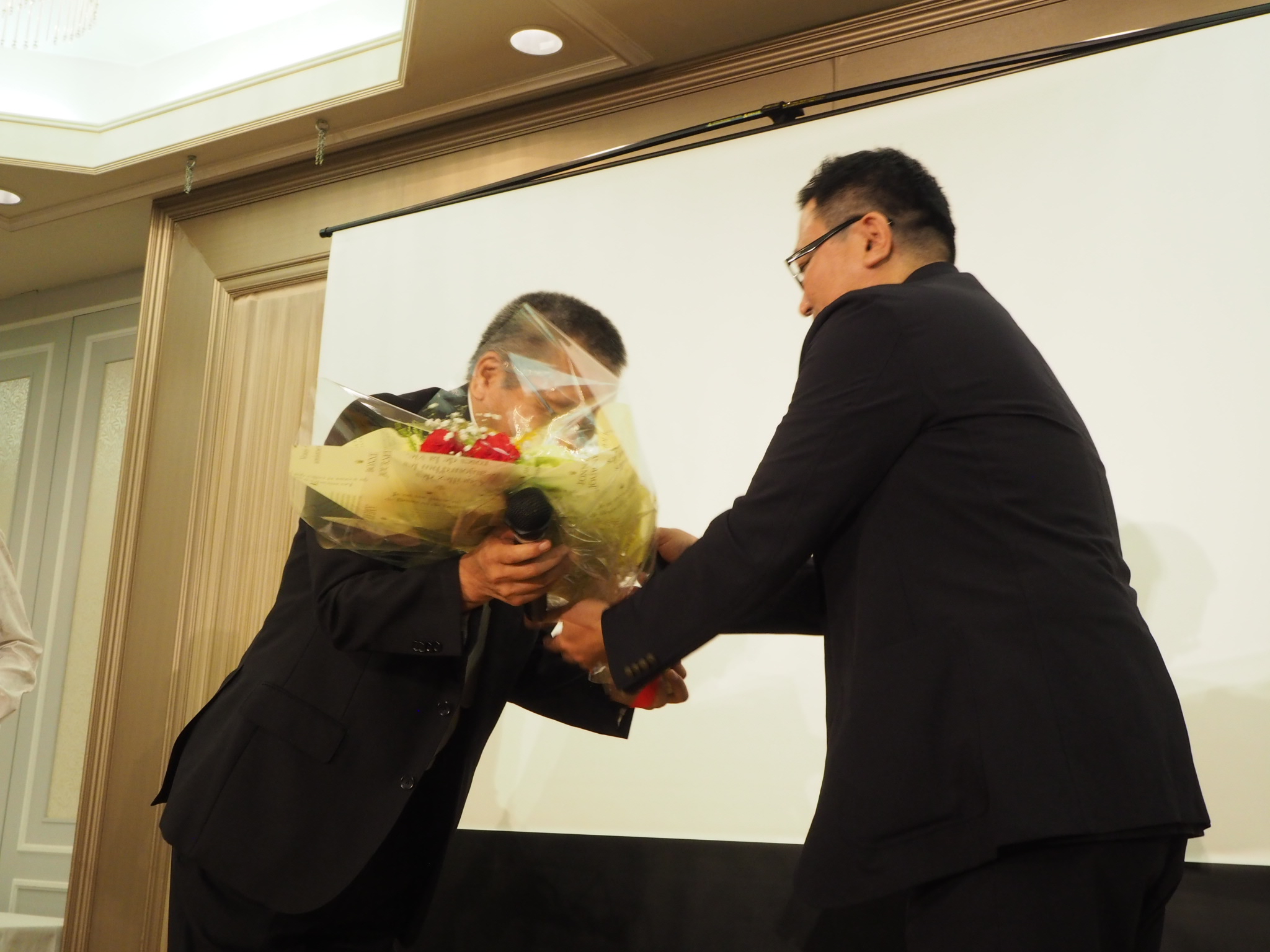 発表会終了後の懇親会では、長年にわたり当社の発展にご尽力いただいた社員の方の勇退に際し、感謝の気持ちを込めて花束を贈呈いたしました。