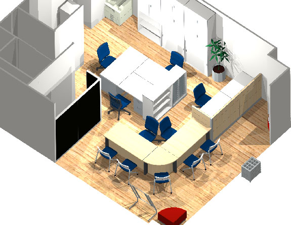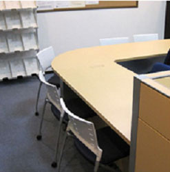 移転に伴い、イメージカラーの青を基調とした家具をご提案させていただきました。