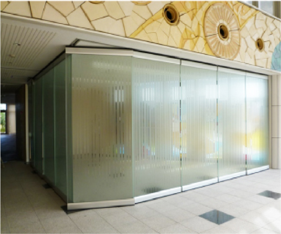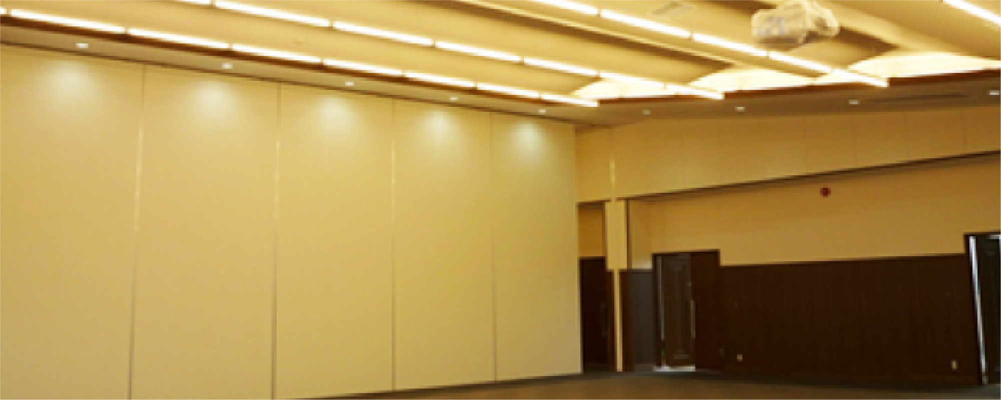 公共施設、商業施設、体育館などの、大きな部屋の移動間仕切り壁のスライディングウォール。簡単な操作が特長で、遮音性のあるタイプや木製パネル、意匠性の高い開放的な仕切りを演出するガラスタイプと多様なニーズに対応できます。